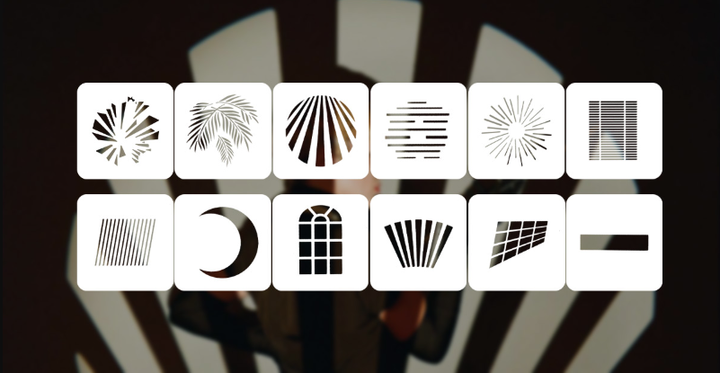 В комплект входят 12 гобо-фильтров и встроенная рамка для гобо-фильтров.