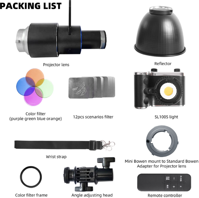 Диапазон цветовой температуры от 2800 до 6500K и плавная регулировка яркости от 0 до 100%.Совместимость с проекционными объективами других светодиодных моноблоков с использованием крепления Bowens S.