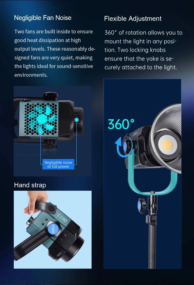 - Долговечность и надежность: Sirui известен своими продуктами высокого качества, что гарантирует долгий срок службы осветителя.