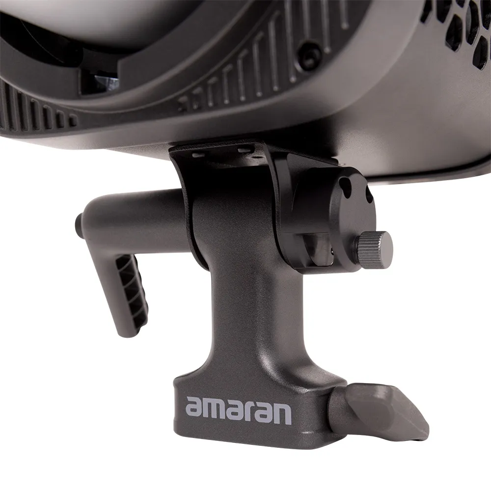 Раздельные ручки регулировки яркости и цветовой температуры позволяют настраивать свет быстро и без обучения. Встроенный модуль NFC даёт возможность подключиться к приложению Amaran одним касанием — ещё до включения прибора. Поддерживается управление по протоколу DMX через USB-C для интеграции в профессиональные системы управления и создания повторяемых сцен в многоканальных конфигурациях.