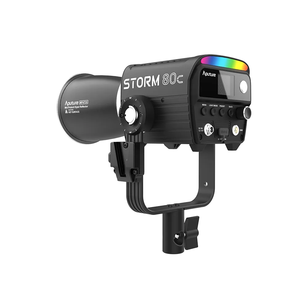 Осветитель Aputure STORM 80c — это инновационный светодиодный прибор, созданный для профессионалов в сфере видеосъемки и фотографии. С мощностью 80 Вт, ультрасовременным чипсетом BLAIR-CG и впечатляющим охватом цветового диапазона (90% Rec.2020), этот осветитель обеспечивает точность цветопередачи и яркость на уровне ведущих стандартов отрасли. Широкий диапазон цветовых температур (1 800K – 20 000K) и возможность тонкой коррекции делают его универсальным решением для любых условий съемки.