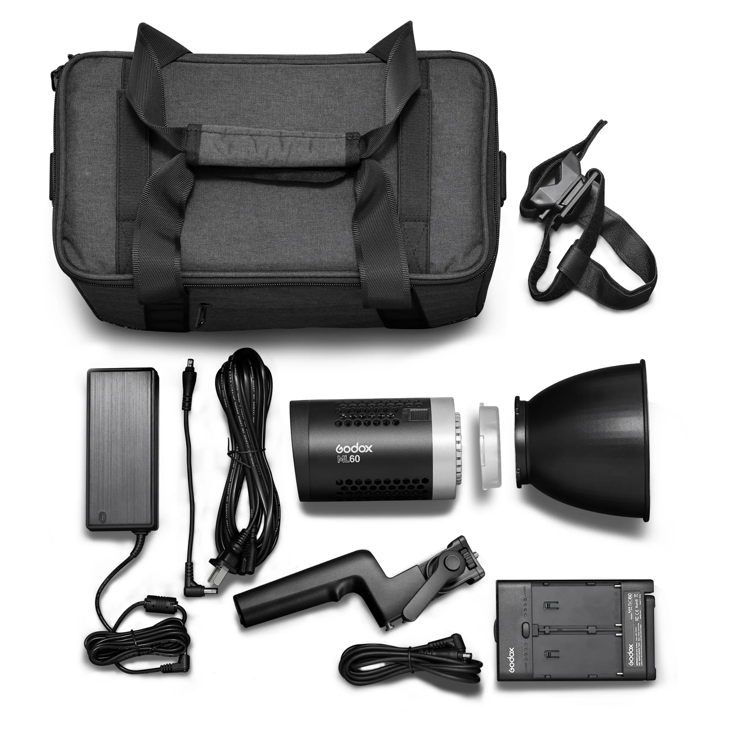 Осветитель светодиодный Godox ML60 – портативный и мощный источник постоянного света, выдающий поток сбалансированного белого дневного света с цветовой температурой 5600±200K и мощностью 60 Вт. Осветитель весом всего 770 г имеет легкую пластиковую рукоятку для работы «с рук». Не греется. Благодаря компактным размерам 145х88х88мм, не превышающим размер ладони, с ним будет удобно работать в «поле». Этот прибор, который питается как от сетевого адаптера, так и от аккумуляторного блока, легко создаст достаточное освещение для репортажной, свадебной и других видов выездных или студийных видеосъемок.