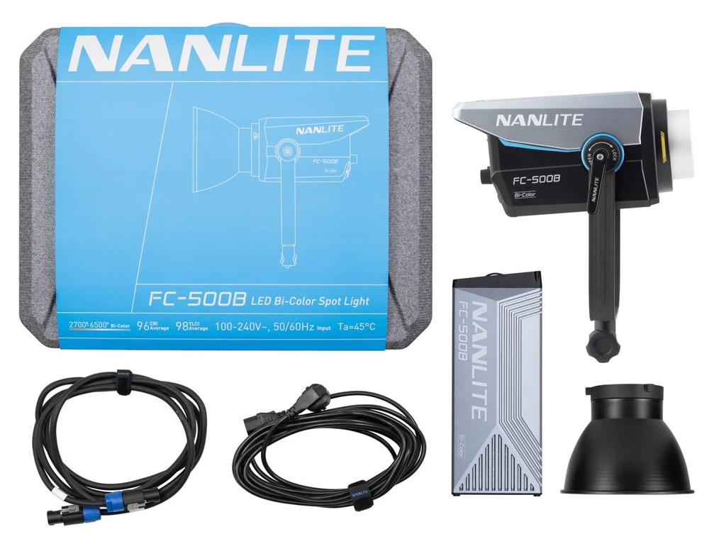 Биколорный осветительный прибор Nanlite FC-500B сочетает элегантный дизайн с профессиональной функциональностью. Уникальная крыловидная форма корпуса выделяет его среди других моделей, а регулировка цветовой температуры в диапазоне 2700–6500K позволяет точно подстроить свет под любую задачу от тёплых интерьерных сцен до дневных съёмок. При этом прибор остаётся компактным и энергоэффективным, работая от сети переменного тока.