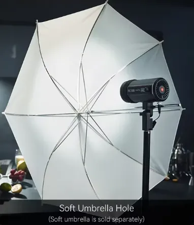 -Встроенные шторки и отверстие для зонта служат для удобства контроля света, позволяя изменять его характеристики в соответствии с потребностями сцены.