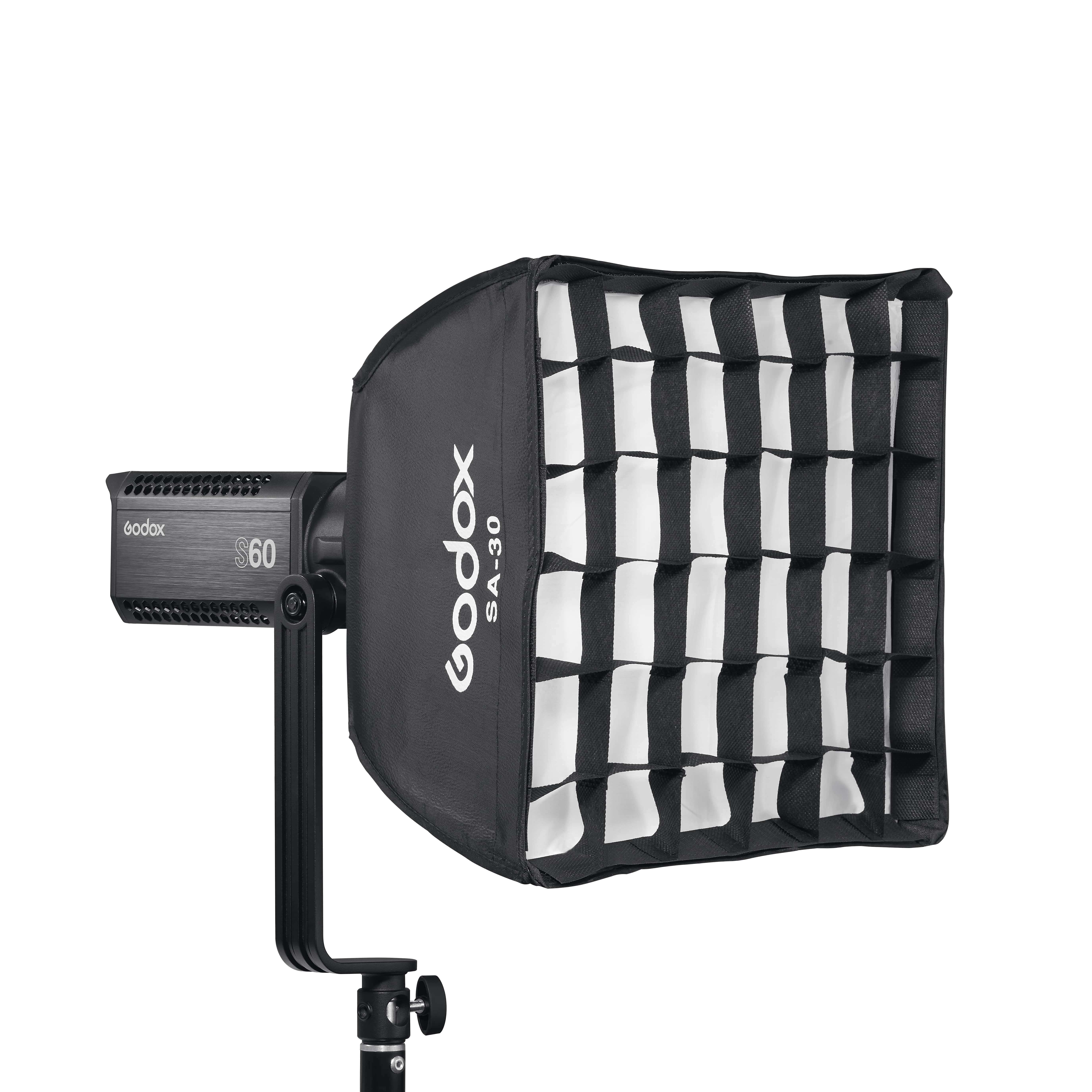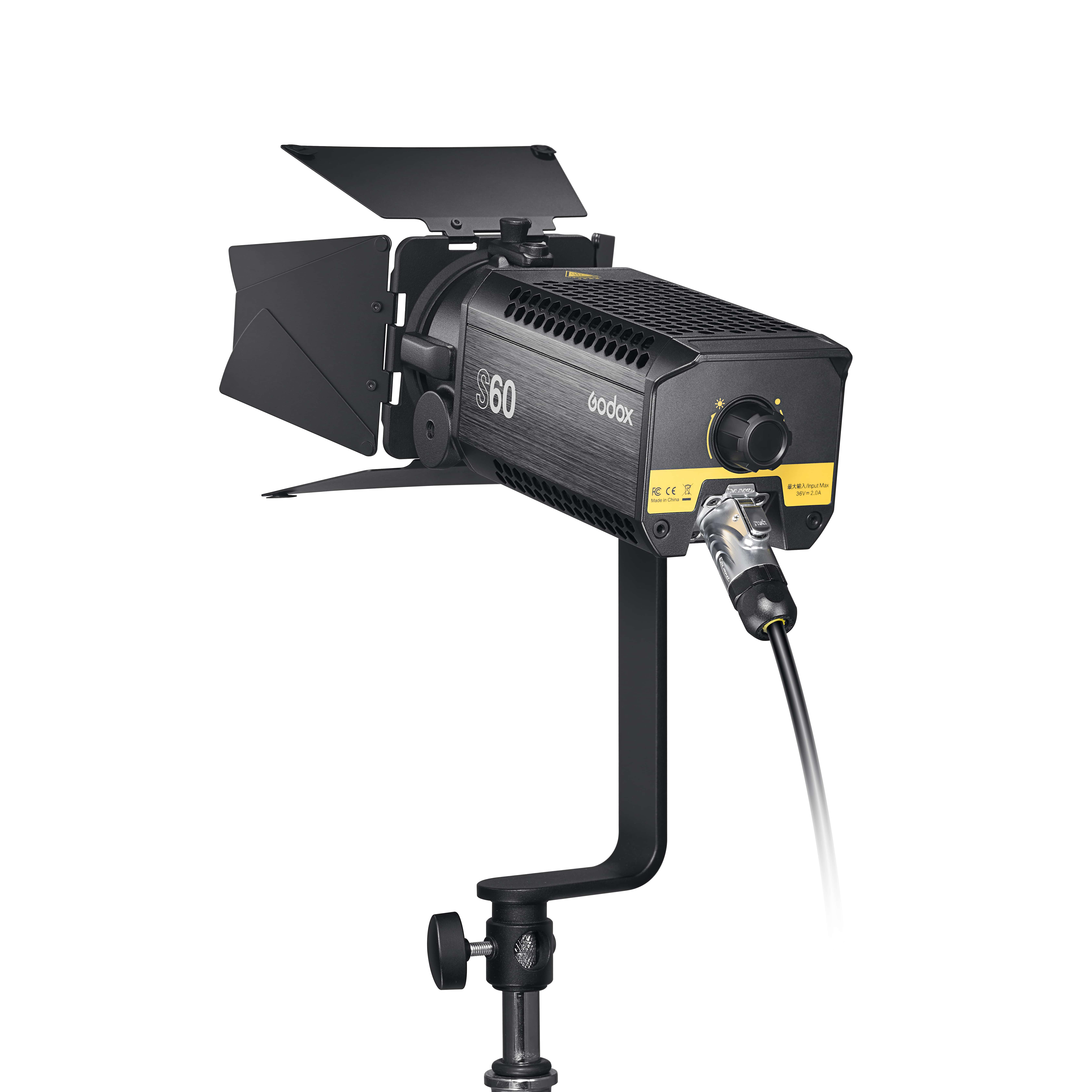 - Три мощных осветителя Godox S60 с регулировкой угла светового потока от 6° до 55°, обеспечивающие освещенность до 40000 лк на расстоянии 1 м.