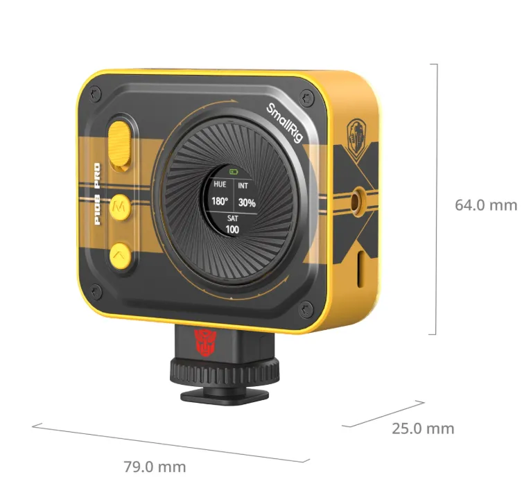 Миниатюрный светодиодный видеосветильник SmallRig Vibe P108 Pro “BumbleBee Edition” — это компактный и мощный источник света второго поколения для мобильного контента. Он объединяет профессиональное качество освещения, интуитивное управление с цветным экраном и исключительную гибкость креплений в прочном и стильном корпусе.