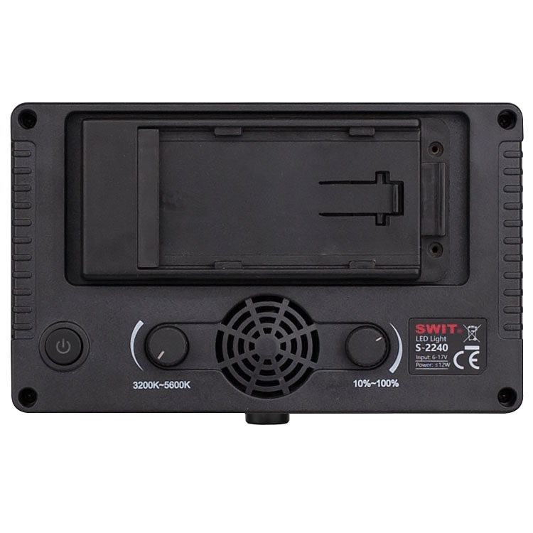 S-2240 это компактная накамерная светодиодная панель от SWIT. Она обеспечивает мягкий свет в диапазоне 3200-5600K, с углом распространения 120°, имеет небольшие габариты и удобно устанавливается на камеру с помощью идущего в комплекте регулируемого крепления.