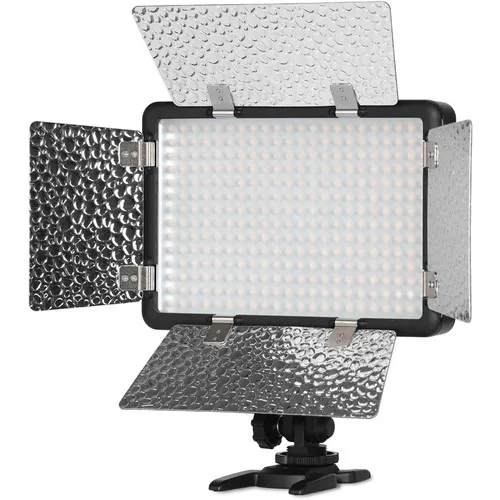 Godox LF308D — накамерный источник постоянного света с функцией вспышки, оснащен 308 светодиодными лампами (холодного белого света) с плавно регулируемой яркостью светового потока от 0 до 100% и цветовой температурой 5600 К. Осветитель со сбалансированным световым потоком с высоким индексом цветопередачи CRI >95 может использоваться во время фото- и видеосъемки как в студии, так и за ее пределами.