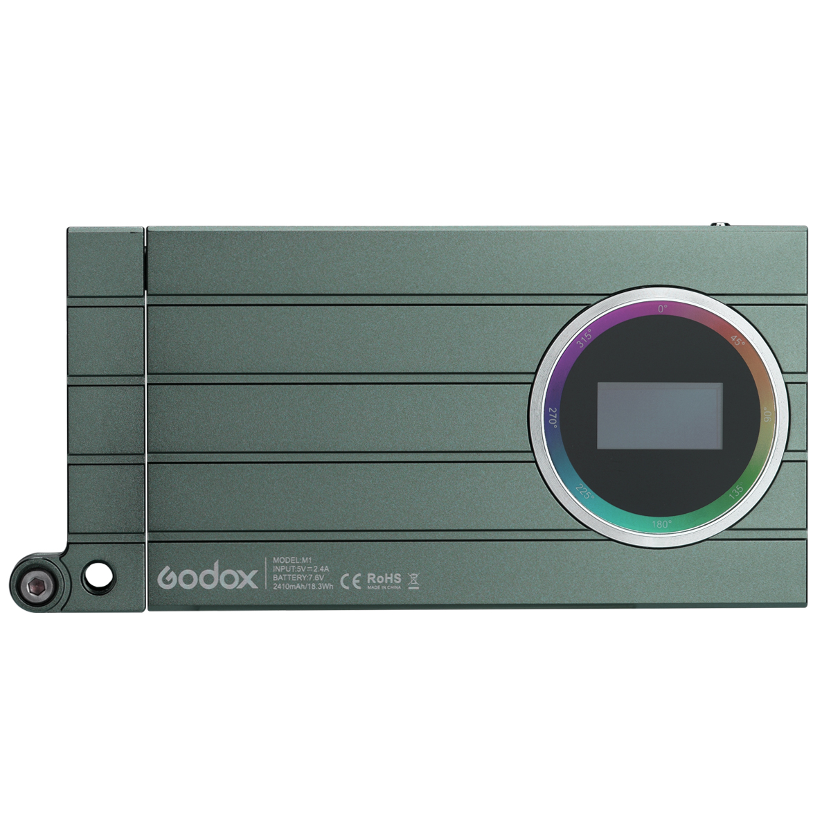 Осветитель Godox RGB Mini Creative M1 накамерный – светодиодная панель в легком алюминиевом корпусе, состоящая из 150 светодиодов (40х2 bi-color + 70 RGB) с мощностью 13Вт, для создания креативного освещения для фото- или видеосъемки. Компактный осветитель можно положить в карман и взять с собой на съемки куда угодно. Осветитель выдает яркий цветной свет с регулируемым оттенком и насыщенностью по шкале HIS в режиме RGB, или сбалансированный белый свет с регулируемой цветовой температурой от 2500 до 8500K. 15 предустановленных светоцветовых сценариев (40 вариантов) позволят имитировать динамические световые сцены – отблеск фейерверков, мерцание свечи или камина, проблесковые маячки специальных машин и др.