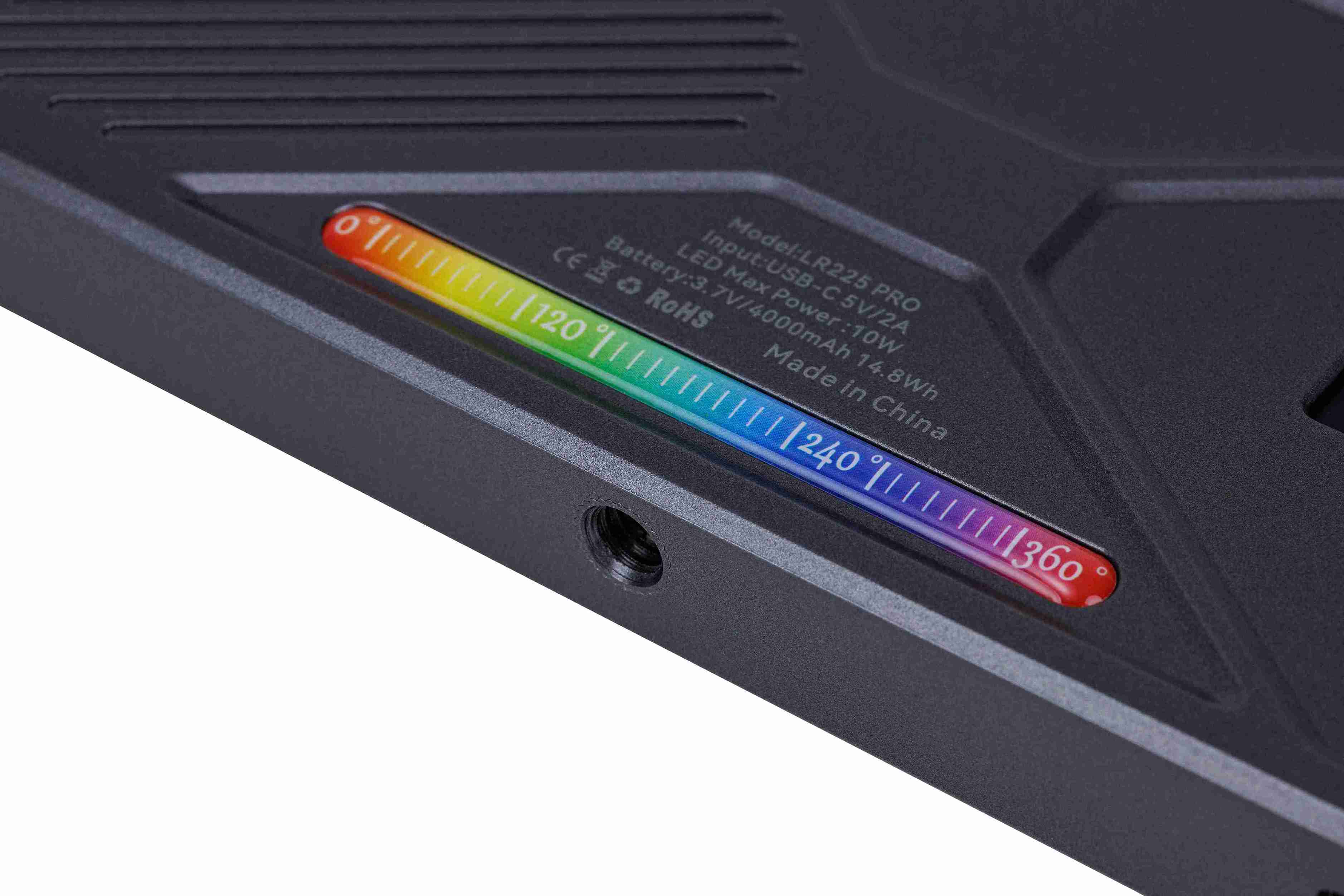 Светодиодная панель Liyadi LR225 — это компактный накамерный RGB источник света мощностью 10 Вт. Цветовая температура регулируется в диапазоне от 2500K до 9900K, а также доступен полный RGB-спектр и  24 встроенных световых эффекта. При компактных габаритах прибор выдает яркость до 1000 люмен, он идеально подходит для работы как в качестве накамерного источника, так и портативной подсветки которую удобно брать в поездку или использовать на площадке.