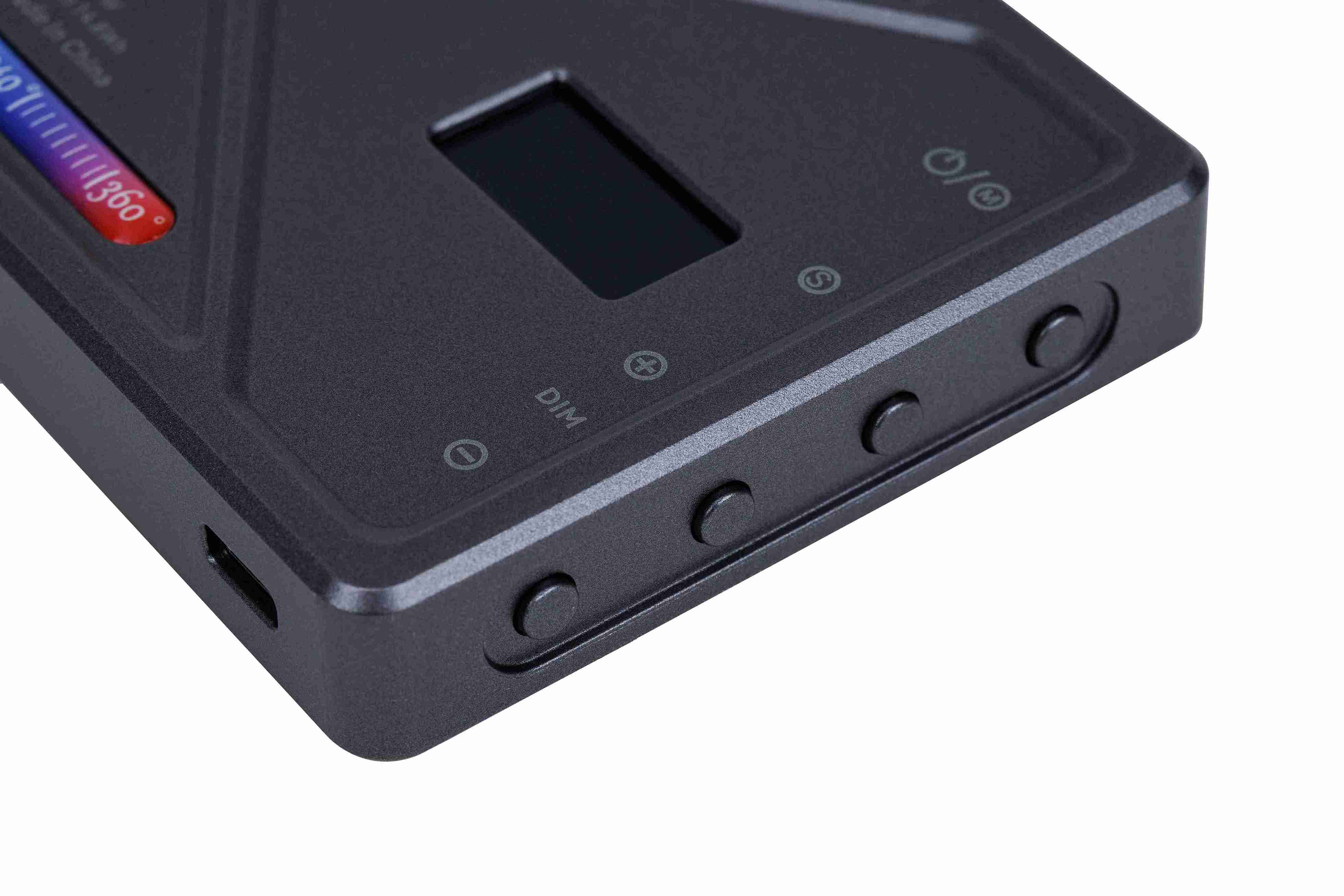 Встроенный аккумулятор емкостью 4000 мАч обеспечивает до 20 часов работы на минимальной мощности и около двух часов на максимальной. Зарядка осуществляется через разъем USB-C. Управлять всеми параметрами — яркостью, цветом, эффектами — можно как с помощью удобного TFT-дисплея и нескольких кнопок на корпусе, так и удаленно через мобильное приложение.