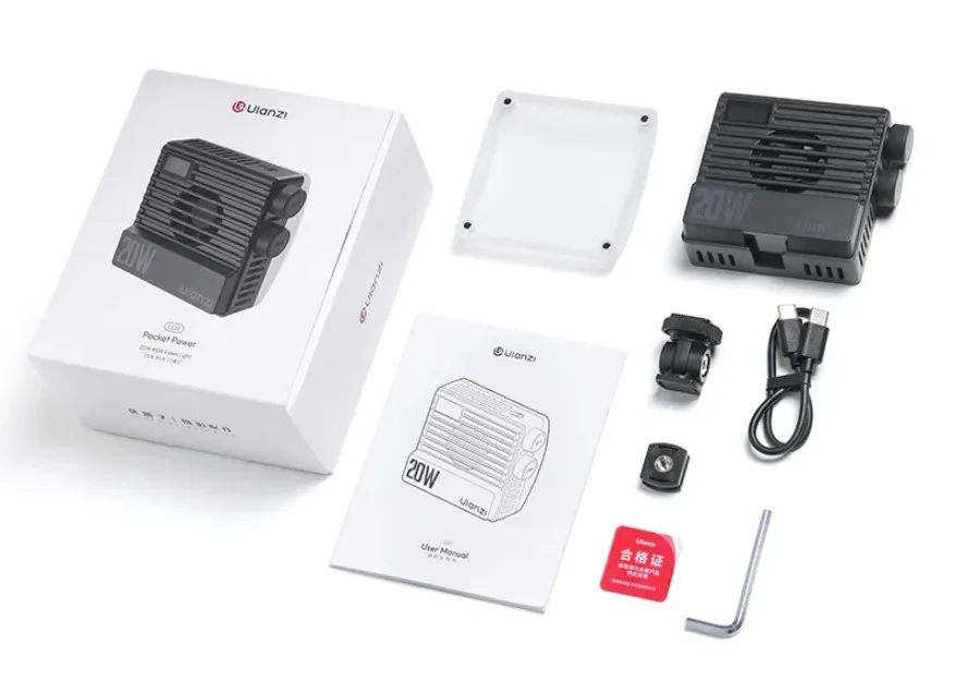 Комплектация (Осветитель накамерный Ulanzi LE20 20W Pocket RGB L090)