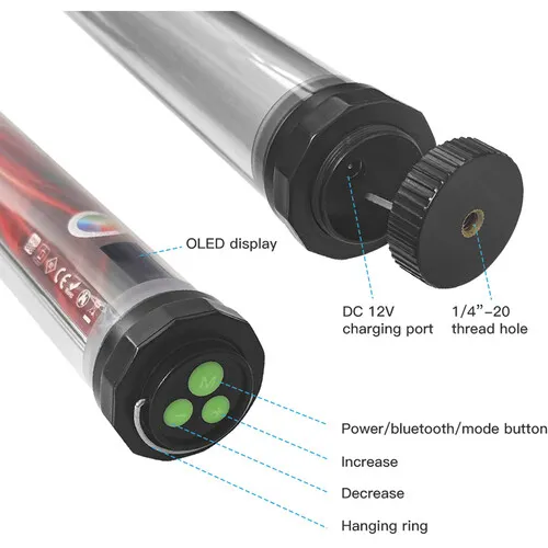 Водонепроницаемый светильник P8 IP68 от DigitalFoto обладает впечатляющими техническими характеристиками, а его размеры 15,7 x 1,8 x 1,8 дюйма делают его удобным в использовании. Степень защиты IP68 позволяет продолжать съемку даже в дождливую погоду. Светильник имеет переменную цветовую температуру от 2500 до 6500 К для соответствия любым условиям окружающего освещения, регулируемую яркость от 5 до 100% и режим RGB с доступом к 36 000 пользовательским цветам.
