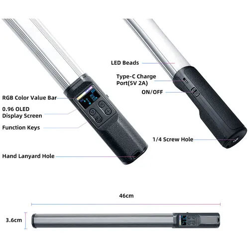 Светодиодная трубка для съемки W150-IIRGB— это вид осветительного оборудования, используемого в фото и видеосъемке для создания яркого и равномерного освещения. Она состоит из нескольких светодиодных ламп, расположенных вдоль длины трубки или панели. Более, чем просто источник света, эта трубка представляет собой источник вдохновения, творчества и удивления. Светильник имеет режим RGB и обширную цветовую гамму CCT, которая варьируется в пределах 2500-9000 К, чтобы плавно сочетаться с условиями окружающего освещения и сочетаться с другими светильниками. Преобразуйте ваш интерьер с помощью светодиодной трубки!