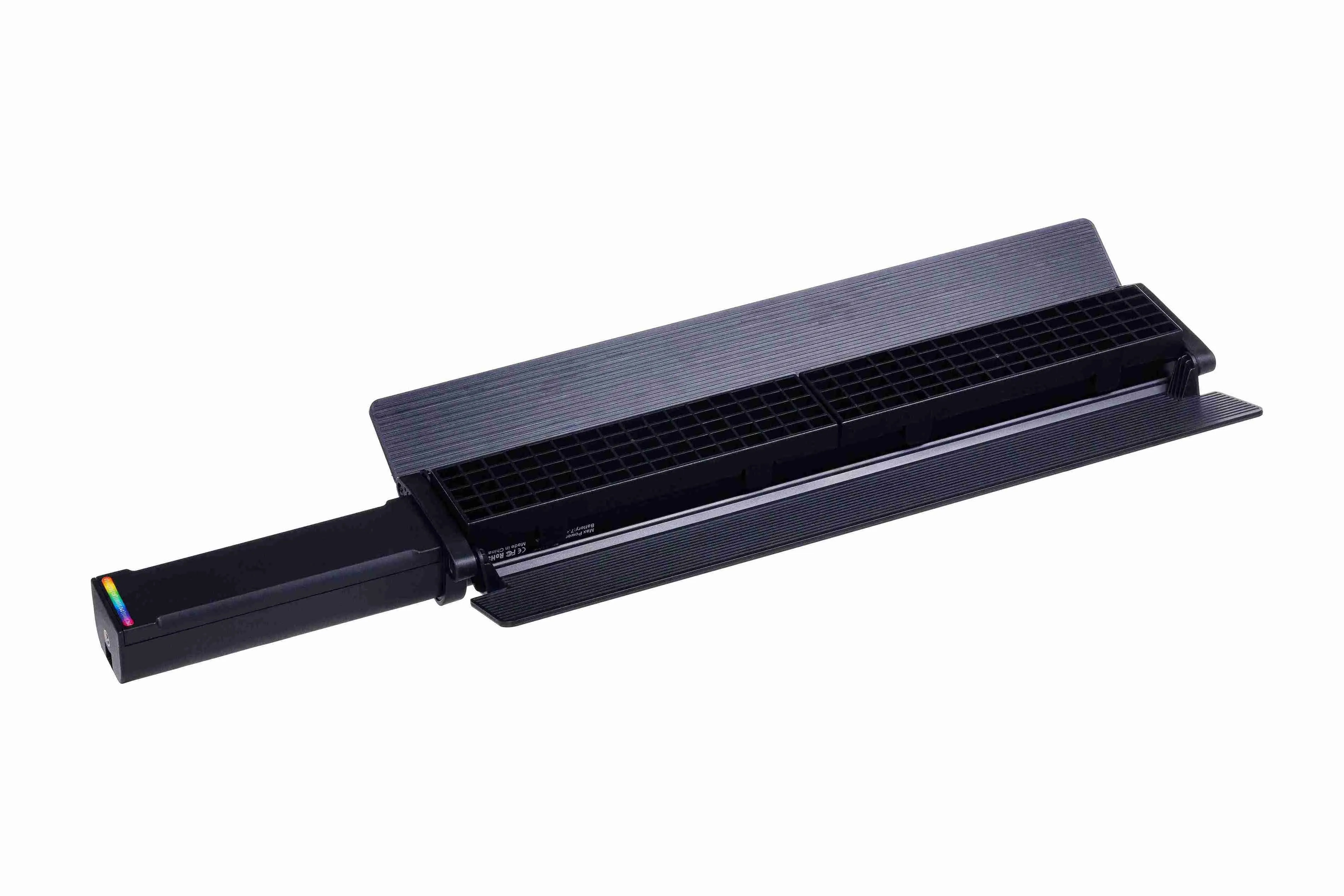 Узкий угол луча 45° делает эту трубку идеальной для использования в качестве акцентного или контрового света. В комплект входят два типа рассеивателей — матовый белый и полупрозрачный), соты для контроля света и складные шторки с регулировкой до 120°.
