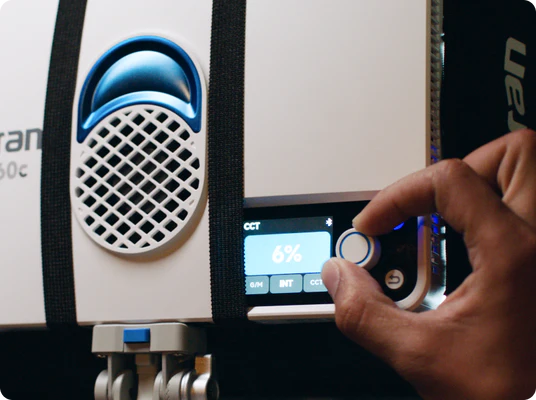 Оснащённый тем же полноцветным интерфейсом, что и серия amaran Ace, Pano 60c делает настройку освещения быстрой и простой. Мгновенно регулируйте яркость и цветовую температуру в новом режиме быстрой настройки, или сохраняйте свои параметры с помощью настраиваемых ярлыков. Управляйте светом дистанционно через приложение amaran — идеально для оперативных изменений во время съёмок или управления несколькими источниками на мероприятии. Независимо от того, установлен ли ваш amaran Pano 60c вне досягаемости или в составе студийной системы, настраивайте параметры одним кликом — прямо со смартфона или компьютера.