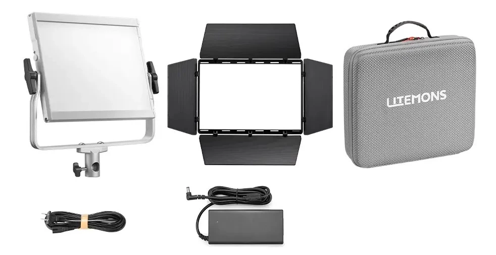 Прибор оснащён встроенной площадкой под аккумулятор V-mount (приобретается отдельно) и комплектуется сетевым адаптером. Вес панели составляет всего 1,8 кг, габариты 42 × 36 × 4,5 см. В комплекте предусмотрен чехол для удобной транспортировки.