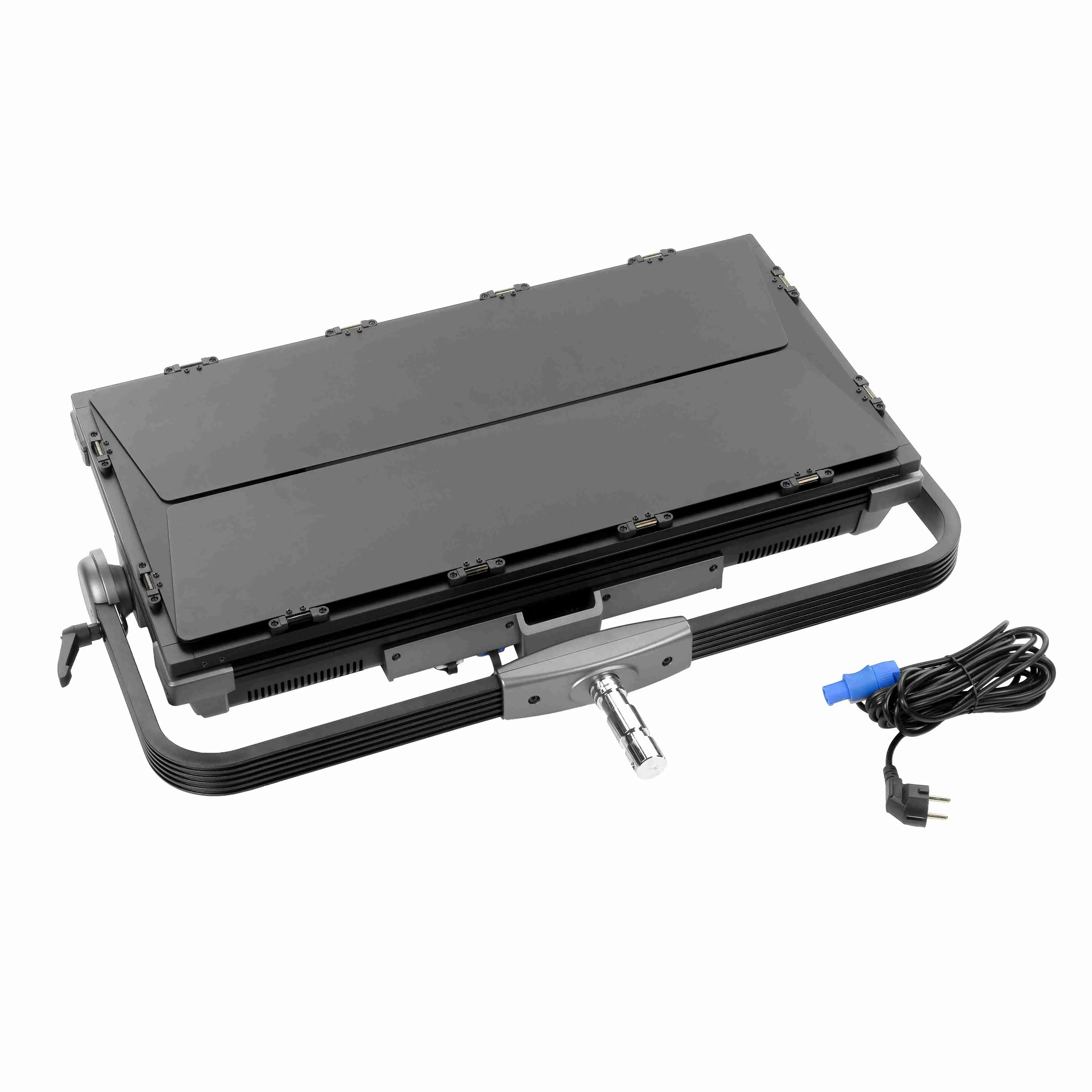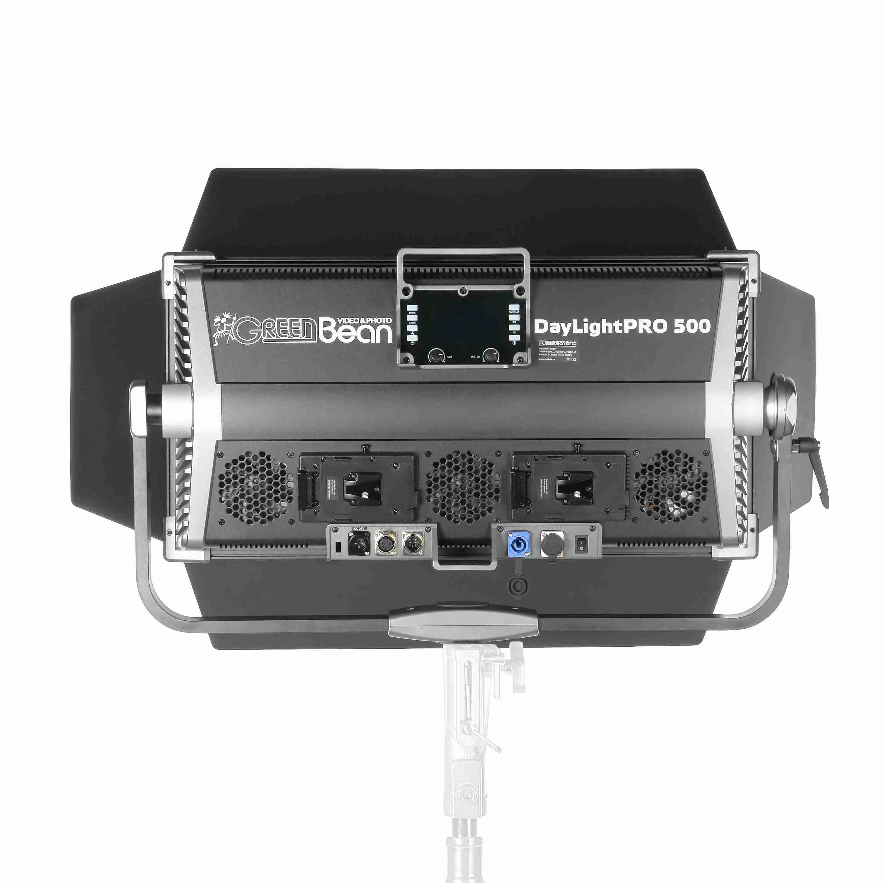Прибор работает от сети AC 100–240В, внешнего источника DC 36В или двух аккумуляторов V-mount (приобретаются отдельно). Активная система охлаждения с тремя вентиляторами имеет бесшумный режим: вентиляторы отключаются, а максимальная яркость ограничивается 50% и это важно при съёмке с синхронной записью звука.