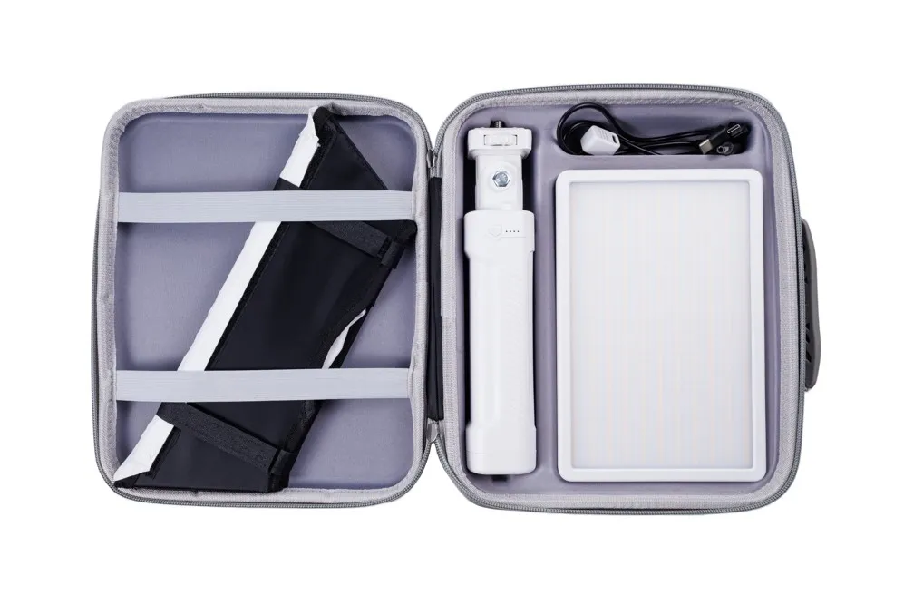 Liyadi P100C — это компактная и мощная светодиодная RGB панель с полным спектром возможностей. В комплекте идет съемная аккумуляторная ручка P77, что делает свет полностью автономным, и компактный софтбокс, который позволяет дополнительно смягчить свет. Панель выдает яркость до 7950 люмен и предлагает регулируемую цветовую температуру от 2500K до 9900K, полный RGB-спектр с 36000 оттенков и набор из 24 световых эффектов.