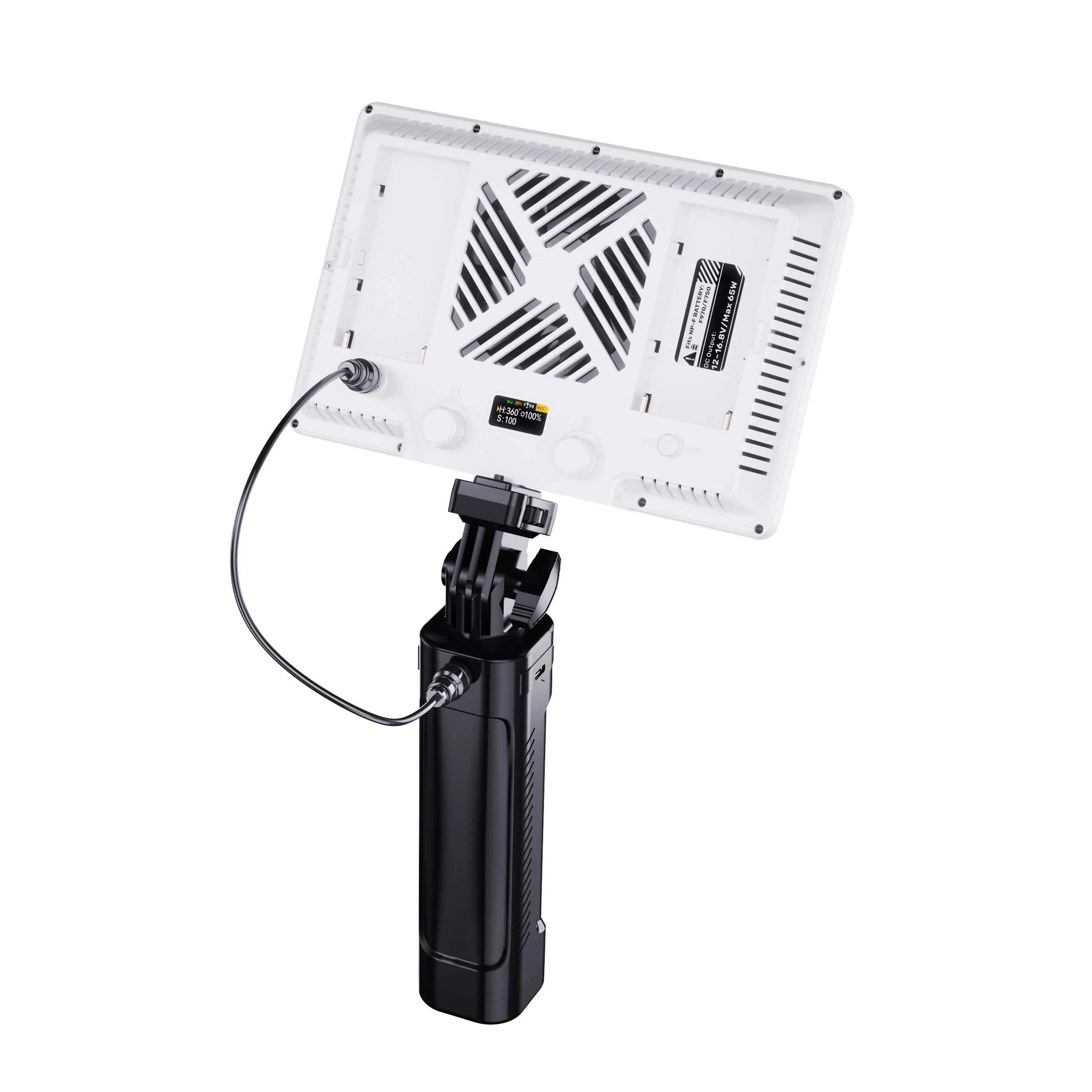 Панель идеально подходит для мобильной автономной работы. Съемная аккумуляторная ручка P77 емкостью 77 Вт·ч обеспечивает до 45 минут работы на полной мощности. Дополнительно панель можно питать от двух батарей типа NP-F (до 70 Вт) или от сети через DC-разъем. Управление осуществляется через TFT-дисплей с двумя колёсиками настройки или удаленно через обильное приложение.