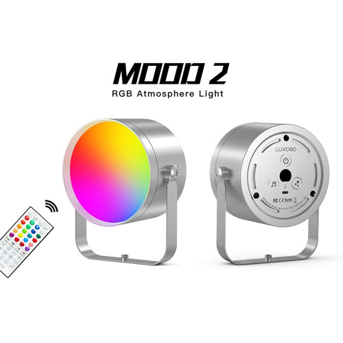 MOOD2 - это компактный светодиодный прожектор RGB с полностью регулируемыми цветами. Он устанавливается на наклонной подставке с резьбой 1/4"-20 в нижней части, поэтому его можно установить на штатив или другое крепление. Цвет регулируется с помощью прилагаемого ИК-пульта дистанционного управления. Он станет идеальным спутником для вечеринок, свадеб, концертов или просто для создания уютной атмосферы в твоем доме.