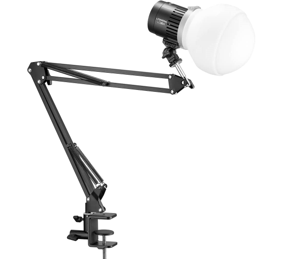 Настольный комплект Godox Litemons LC30D-K1 включает в себя легкий и портативный источник постоянного света с постоянной цветовой температурой 5600К, сферический силиконовый рассеиватель Godox ML-CD15 и монтажные кронштейны Godox AH-01 с креплением в «башмак» и Godox DT-BAO1 со струбциной для установки на плоских поверхностях. Универсальное эффективное решение для освещения съемочного пространства для создателей контента – фотографов, видеографов, блогеров и многих других.