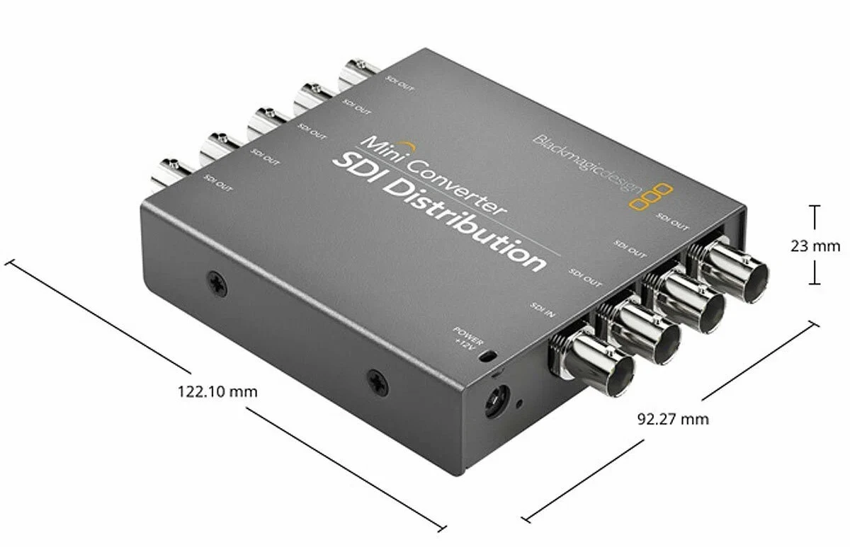 Распределительный усилитель Blackmagic Design Mini Converter SDI Distribution позволяет одновременно передавать видеосигнал на восемь устройств без потери качества. Устройство автоматически определяет формат входящего сигнала, восстанавливает тактовую частоту и выдаёт восемь идентичных выходов, идеальное решение для построения надёжной инфраструктуры в студии или передвижном комплекте при минимальных затратах.