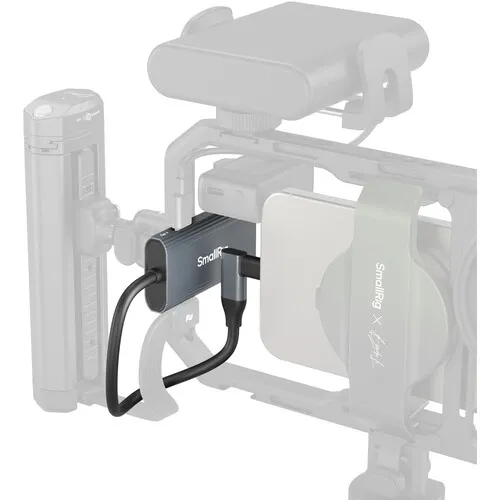 Хаб оснащён встроенным холодным башмаком с зажимом, его можно быстро установить на клетку, рукоятку или любой другой элемент с соответствующим креплением. Благодаря этому хаб надёжно фиксируется в системе и не болтается во время съёмки. Встроенный короткий USB-C кабель подключается напрямую к вашему смартфону, исключая необходимость в дополнительных переходниках. Компактный корпус из алюминия эффективно отводит тепло и выдерживает интенсивное использование на съёмочной площадке.