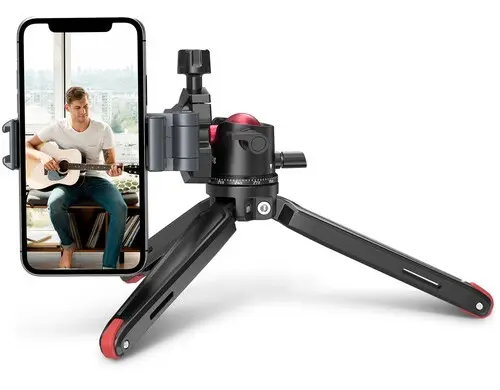 Настольный штатив — компактный, легкий и удобный аксессуар, который может стоять на столе, полке или неровной поверхности. Он подходит для фотоаппарата, экшн-камеры, смартфона, но также и небольшого накамерного света или микрофона. Его тренога обеспечивает достаточную устойчивость, несмотря на маленький размер. Настольные модели часто используют для видеосъемки, селфи, записи аудио, стриминга или работы с монитором в качестве телесуфлера. Особенно удобно брать такой штатив с собой для помощи в выездной съемке, ведь он занимает минимальное место в сумке.