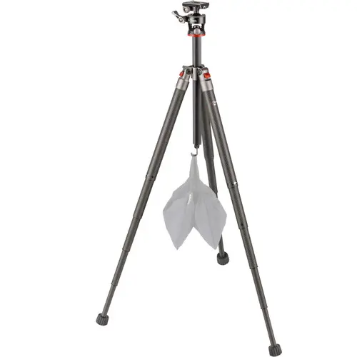 Дополнительная стабилизация на профессиональных моделях штативов обеспечивается при помощи крюка, который позволяет добавлять груз на центральной оси, чтобы сделать штатив более устойчивым, удерживать при сильном ветре или работе на неровной земле.