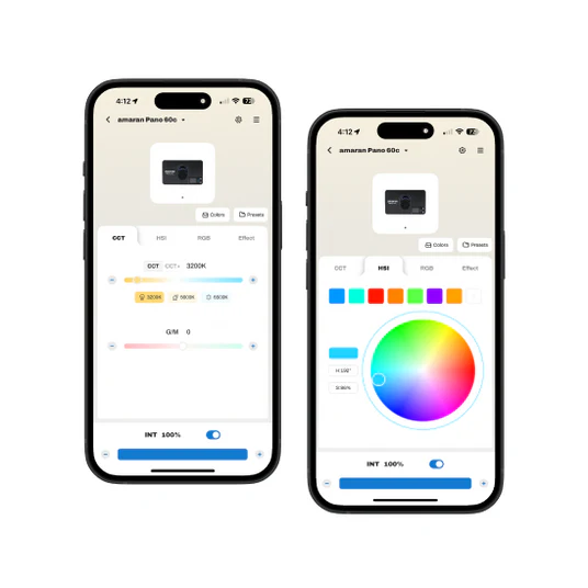Управляйте Pano 120c локально через встроенные элементы управления с цветным экраном или дистанционно через Bluetooth и мобильное приложение amaran. При установке прибора в труднодоступных местах — используйте беспроводные функции управления, чтобы выбрать конкретные цвета освещения и быстро внести изменения. Создавайте атмосферные сцены и разнообразие освещения с помощью специальных эффектов Pano 120c, включая фейерверки, неисправную лампочку, молнию, телевизор, стробоскоп, взрыв, огонь, папарацци, сварку, полицейскую машину и вечеринку.