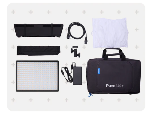 Компактный и легкий Pano 120c удобен для транспортировки и экспериментов на выезде. Хотя панель работает от батареи, она совместима с адаптером Ace E-lock от amaran для более надежного мобильного питания. Это первая панель, использующая технологию USB-C PD для большей совместимости зарядки в любом месте. Комплект включает в себя мягкую коробку, решетку для контроля света, диффузор, адаптер Ace E-lock для крепления на стойку, блок питания USB-C PD с фиксацией, сетевой кабель AC и сумку для переноски, чтобы легко транспортировать оборудование для беспроблемной съемки на ходу.